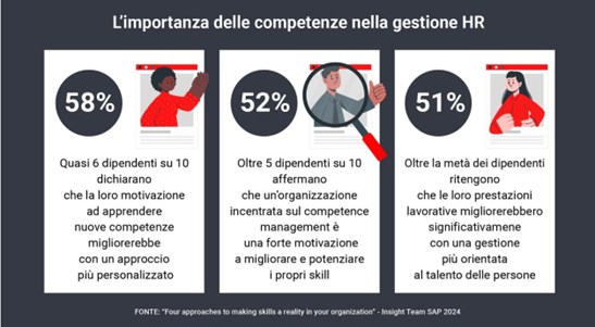 A questo proposito, una ricerca globale commissionata da SAP ha rivelato il forte desiderio dei dipendenti di vedere il tema delle competenze valorizzato nelle pratiche HR delle loro organizzazioni. Gli intervistati ritengono che, in media, il 70% delle decisioni sulle persone dovrebbe essere basato sulle competenze e solo il 30% su criteri tradizionali come l’istruzione o i titoli di lavoro. Una schiacciante maggioranza (88%) ha espresso un’opinione positiva riguardo alle decisioni basate sulle capacità e conoscenze, ritenendo che tali pratiche contribuiscono a migliorare anche le loro esperienze lavorative.